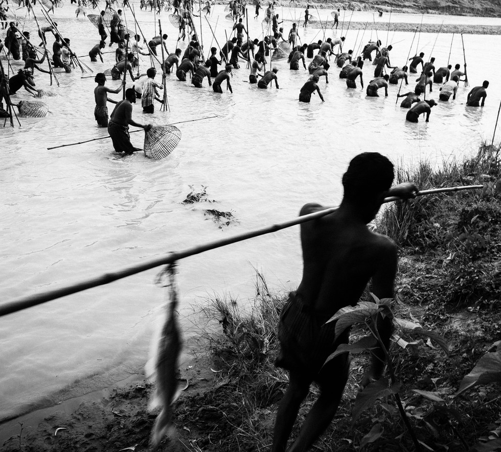 Polo Bawa is a century-old traditional fishing festival in Bangladesh. Hundreds of people including villagers, fishermen take part in this festival spontaneously with "polo", a bamboo-made fish catching trap, in knee-deep water forgetting their woes of the summer and cheering with their mates when they trap fishes with their polo. Polo Bawa festival usually takes place in late winter as the water of the low land area began to dry up and the farmlands aren't prepared yet to harvest new crops at the riverine regions of the country. So people of all ages, sitting idle at home or yearning for an adventure, participates in the festival while hundreds of others enjoyed the event. In the festival, two groups consisting of 40 to 50 fishermen each, takes place opposite of each other and catches fishes like Wallagos, Ghagats, Tengras, Swamp barbs, with their polo.